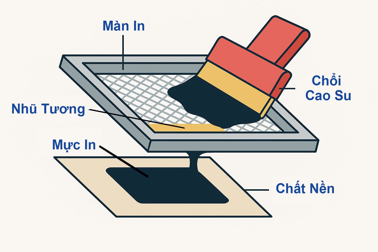 | Độ phủ mực | Dày dặn, độ bền ma sát vật lý cao. | Mỏng nhẹ, thẩm thấu nhanh vào sợi vải. |